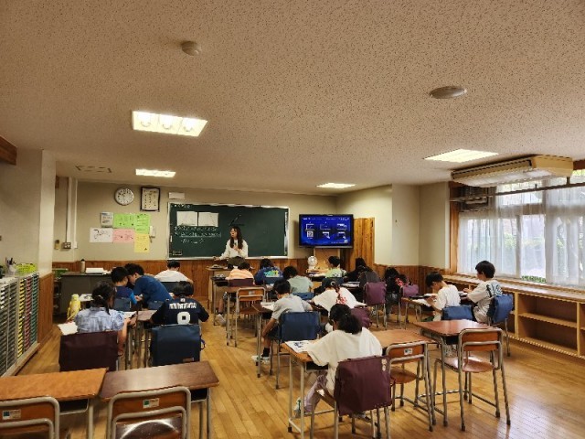 4年生の算数は、分度器の使い方を学んでいます。3グループに分かれて授業を行っています。