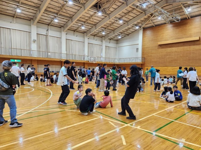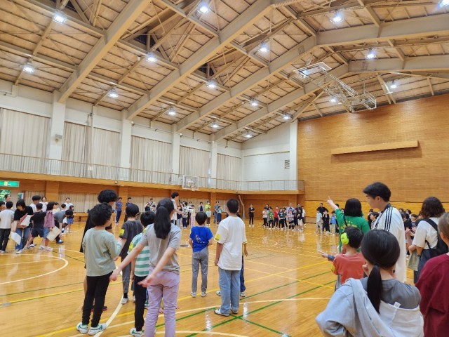 他校の子どもたちと一緒に猛獣かりゲームをしています。