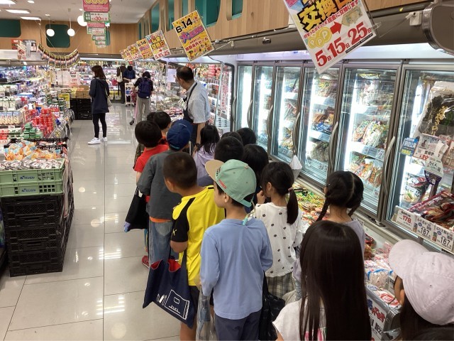 生活科の町たんけん第2弾は近隣のスーパーマーケットの見学です。店員さんや店長さんの働きに注目しながらお店の中を見て回りました。