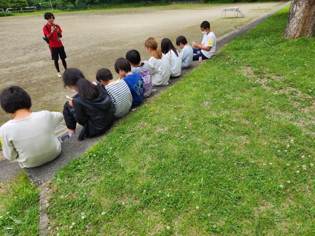 家族への手紙を書きました。学園に設置されたポストに投函しました。移動教室での思い出が書いてあります。おやつのジュースとゼリーを園庭で堪能しています。