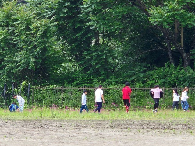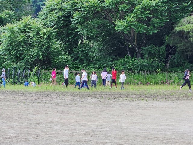 園庭でおやつを食べおわったあとに広い園庭を散策しました。