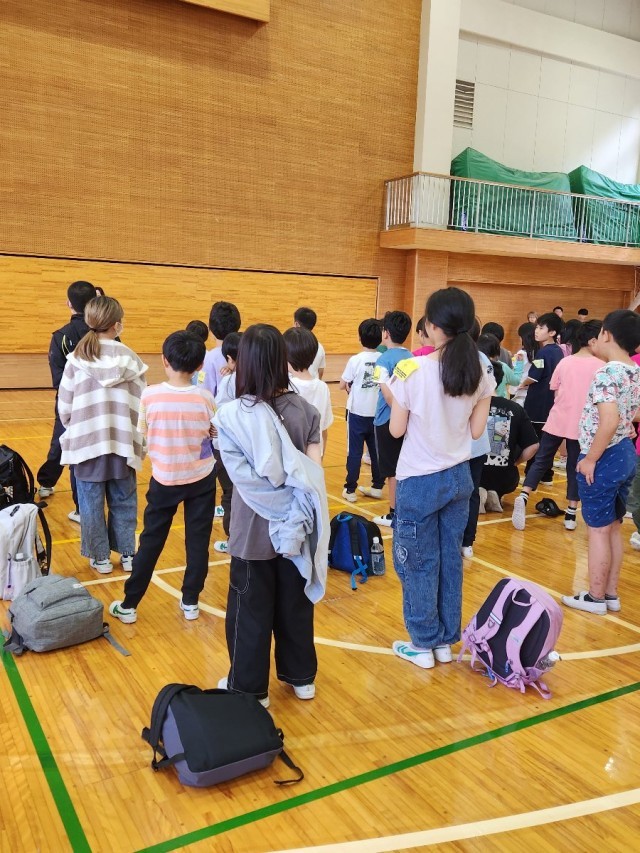 閉園式を終えました。これから恩賜公園に向かいます。恩賜庭園では、五校で一緒に遊びます。アスレチックでも遊びます。