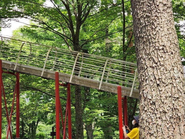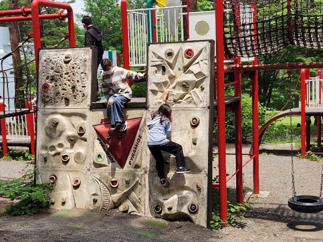 恩賜公園のアスレチックで、楽しく遊びました。お弁当を食べて学校に向かいます。