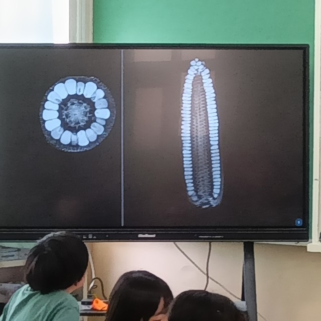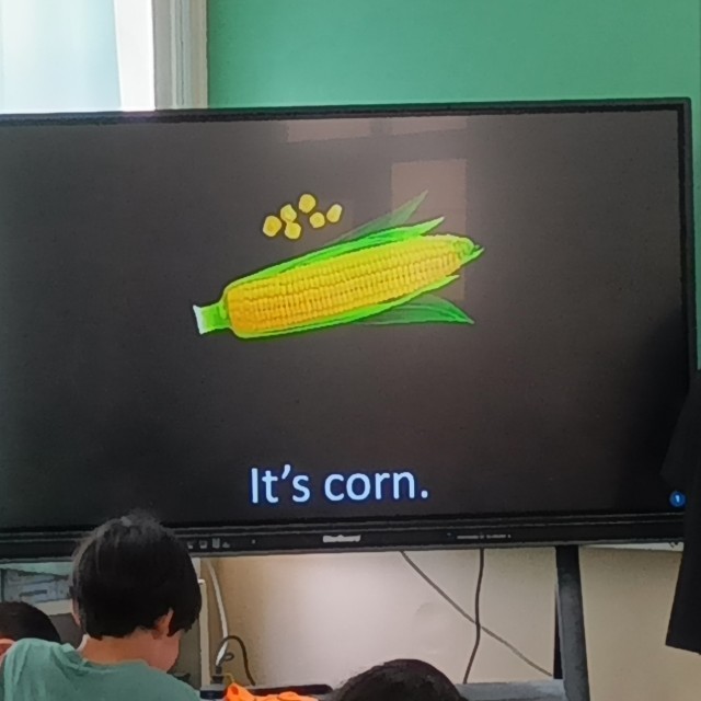 今日は、野菜の単語を学びます。野菜のレントゲンのような映像を見て、クイズ形式で野菜の名前を答えます。