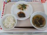 本日の給食は、麦ごはん・さばの味噌煮・野菜のからしじょうゆかけ・沢煮椀・牛乳です...