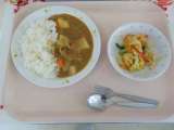 本日の給食は、三宿カレーライス・5色のサラダ・牛乳です。 食材の産地 こめ ...