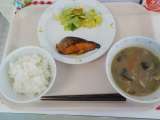 本日の給食は、ごはん・魚の照り焼き・即席漬け・すいとん・牛乳です。