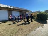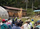 宿舎の方にお礼を言って出発です。 これから行動班別に村めぐりです。