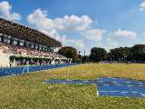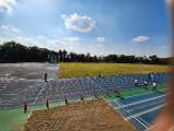 競技場に入りました。 三宿小学校の垂れ幕も張り準備完了です。
