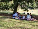 砧公園に到着しました。 早いですが、美味しいお弁当を食べています。