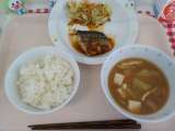 本日の給食は、マーボー豆腐丼・海藻サラダ・りんご・牛乳です。