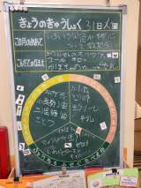 毎日、1階の献立表に保健、給食委員会の子どもたちが、献立に使われている食物を栄養...