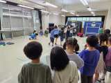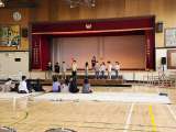 元気な歌声が、体育館から校庭を超えて、校舎に届いています。 舞台での動きも上手...