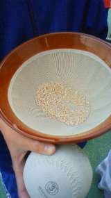実った米の脱穀です。籾すりから玄米。しだいに見なれた米のすがたになっていきます。...
