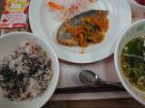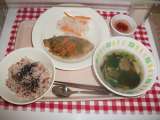 本日の給食は、赤米の赤飯・魚の彩りあんかけ・紅白酢のもの・お祝いすまし汁・ホワイ...