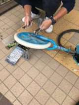主事さん方が一輪車の整備をしてくださいました。 傷んだチューブを交換し、サドルも...