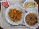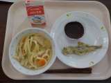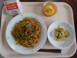 本日の給食は、屋台風やきそば・野菜のごま酢あえ・りんごマフィン・牛乳です。 食...