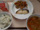 本日の給食は、わかめごはん・魚の塩こうじ焼き・五目豆・のっぺい汁・牛乳です。 ...