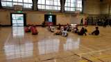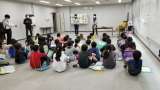午前中の見学が終わりました。これから、昼食です。 代表の子が、職員の方 に向けて...