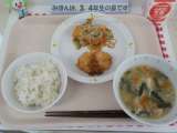 本日の給食は、麦ごはん・からあげねぎソース・こんにゃくサラダ・にらたまスープ・牛...