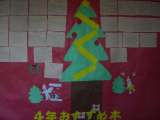 職員室前の廊下に4年生のおすすめ本の紹介文が掲示されています。お助け係の3人が1...