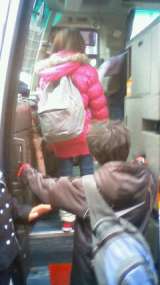 社会科見学、いよいよ出発です。高速道路からも、東京の様子を学習します。