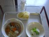 今日の献立は、ほうとう、牛乳、かぶのゆずかけ、りんごむしパンです。
