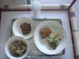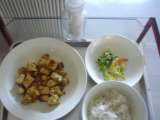 今日の献立は、ごはん、牛乳、マーボー豆腐、辣白菜です。
