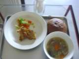 今日の献立は、チョコチップパン、牛乳、フライドチキン、ABCスープ、にんじんサラ...