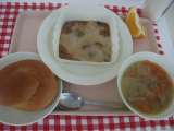 本日の給食は、黒砂糖パン・ムサカ・白インゲン入りスープ・牛乳です。 食材の産地...