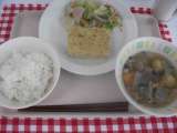 本日の給食は、ごはん・切り干し大根の卵焼き・野菜の梅風味あえ・せんだこ汁・牛乳で...
