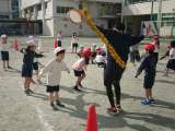 2月22日(金)の2時間目、暖かい日差しが降り注ぐ校庭で、1年生が体育授業をして...