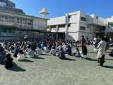 今日の避難訓練は予告なしで行いました。 想定は地震発生後、給食室から出火、放送設...
