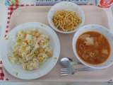 本日の給食は、スパゲッティソイミートソース・イタリアンサラダ・りんご・牛乳です。...