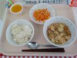 本日の給食は、むぎごはん・ジャージャン豆腐・にんじんサラダ・つぶつぶみかんゼリー...