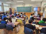 文学的文章の学習をしています。担任が全部を読んで聞かせています。 子どもたちは、...