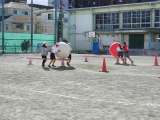 5年生、6年生が、卒業記念スポーツ大会を行いました。 大玉を障害物を通りながら...