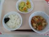 本日の給食は、ごはん・のりの佃煮・じゃがいものそぼろ煮・即席漬け・牛乳です。