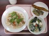 本日の給食は、たけのこごはん・ししゃものカレー揚げ・ちくわの磯辺揚げ・豆腐汁・牛...