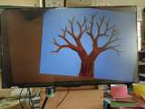 午後になってから、図工室では4年生が絵の具を使って大きな画用紙に木の絵を描いてい...