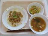 本日の給食は、とびうおそぼろ丼・野菜のからしじょうゆ・豆腐あんかけ汁・牛乳です。...