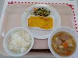 本日の給食は、ごはん・えび入り卵焼き・野菜のおかかかけ・けんちん汁・牛乳です。 ...