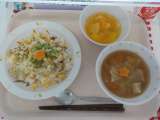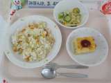 本日の給食は、えびピラフ・オムレツ・フレンチサラダ・牛乳です。 食材の産地 こ...