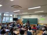 いいお天気です。 今日は三宿小の歴史を知り、1年生の入学をお祝いする会です。 会...