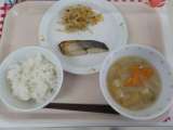本日の給食は、むぎごはん・さわらの西京やき・ごまずかけ・豆腐汁・牛乳です・ 食...