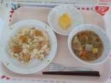 本日の給食は、たけのこごはん・豚汁・オレンジマーマレードケーキ・牛乳です。 食...