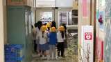 学校探検に出発です。 2年生が、優しく1年生に声をかけながら、学校探検が始まりま...