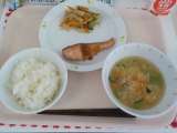 本日の給食は、ごはん・魚のステーキソース・こんにゃくサラダ・チーズのふわふわスー...