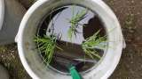 社会科、総合的な学習の時間を使い観察しています。一人1バケツで、稲を育てます。昨...