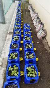わかば学級は、ミニトマト、きゅうり、なす、大豆を育てます。花壇で育てるので、生長...